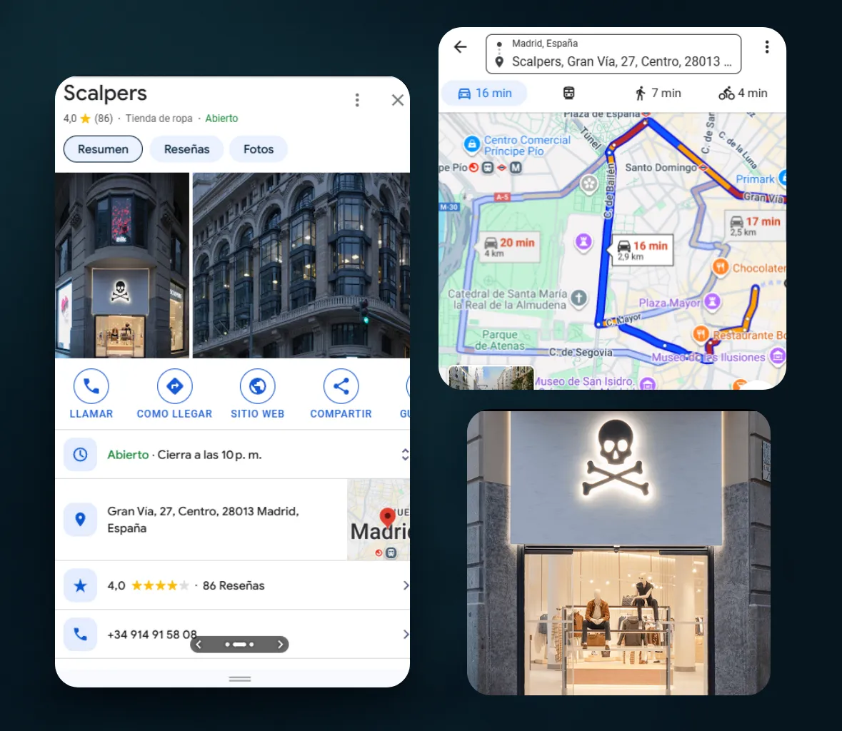 Scalpers descubrió que podía reforzar su imagen también en el entorno digital de cercanía. Lo que en tienda es excelencia visual y experiencia cuidada, debía reflejarse también en Google Maps, Apple Maps y cada directorio relevante.